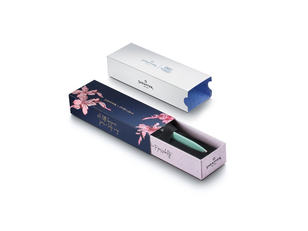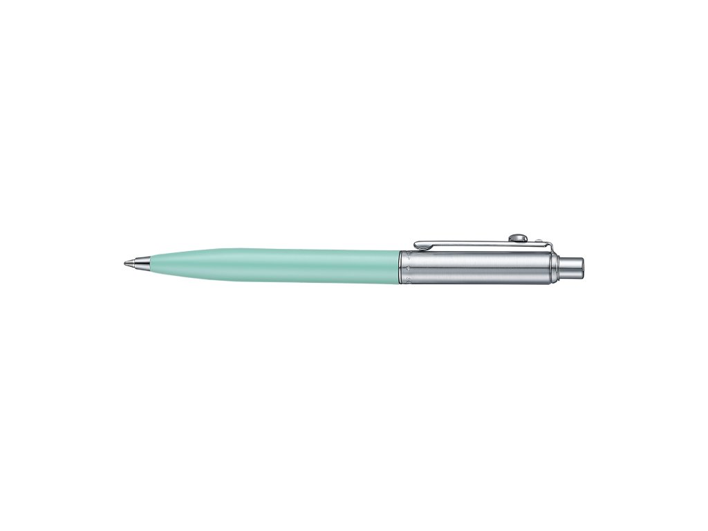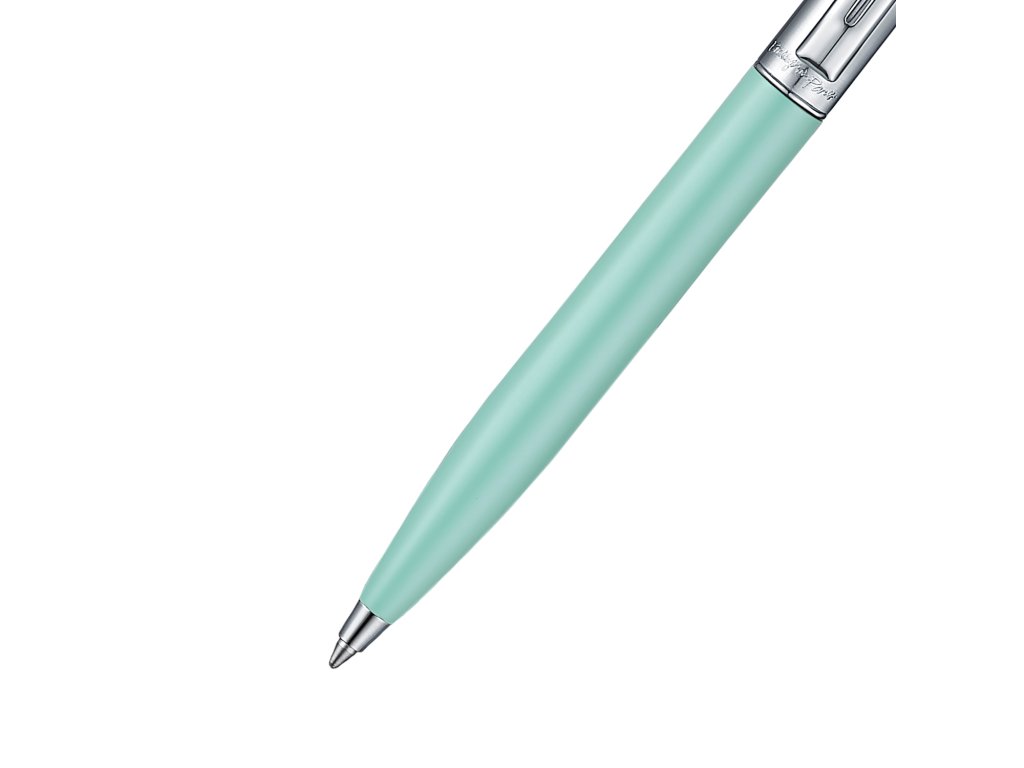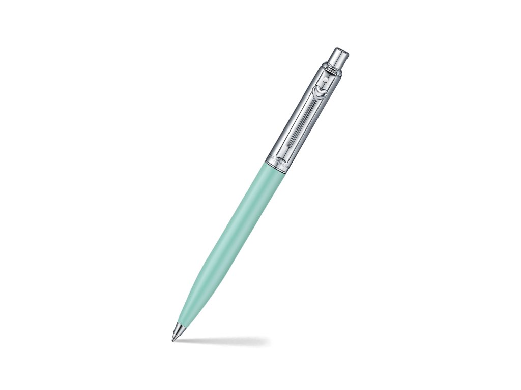 Pastelově zelené kuličkové pero Sheaffer Sentinel Emily in Paris přináší svěží, současný pohled na klasickou eleganci. Tělo pera má hebký matný povrch, který je příjemný na dotek a působí decentně, ale stále luxusně. Kontrastní leštěné chromované prvky dodávají psacímu nástroji čistý, profesionální vzhled vhodný do kanceláře, na pracovní jednání i do kabelky.