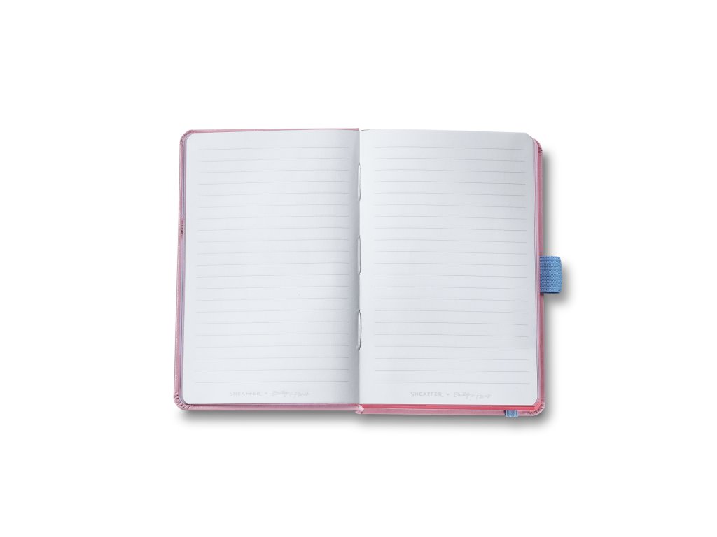 - Dvě textilní záložky – jedna v ikonické Sheaffer červené, druhá barevně ladící k designu zápisníku