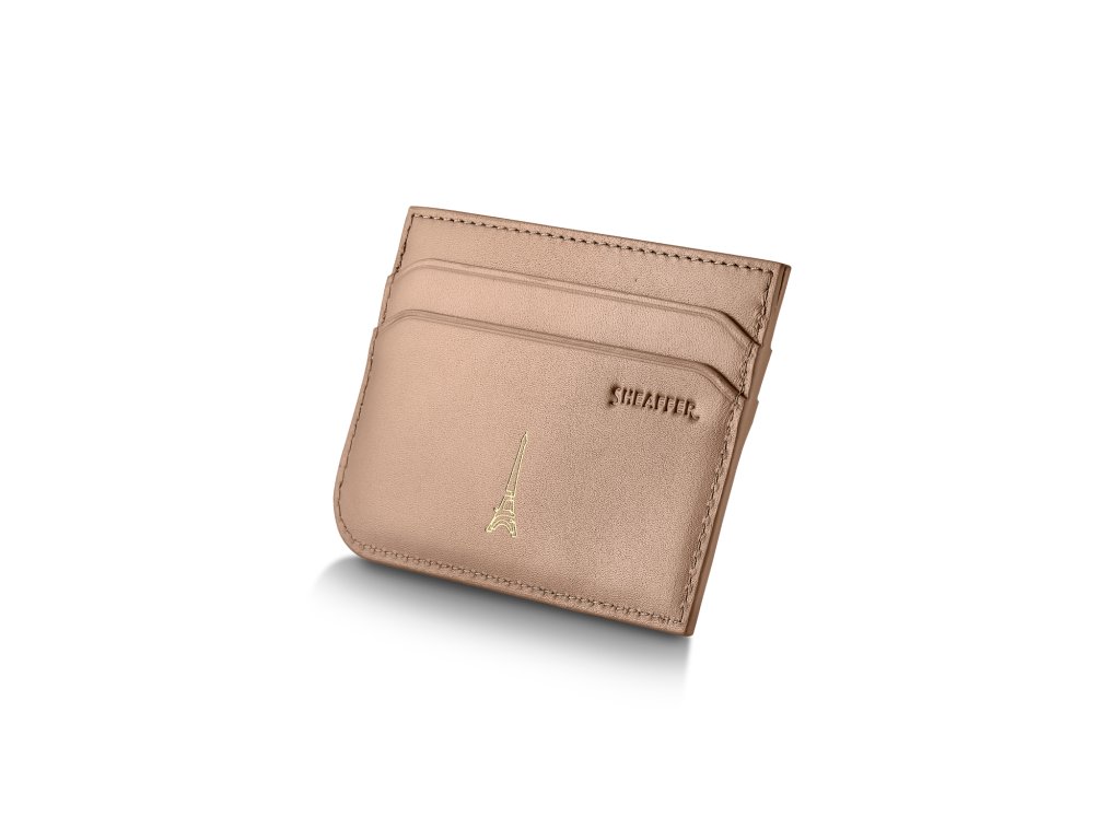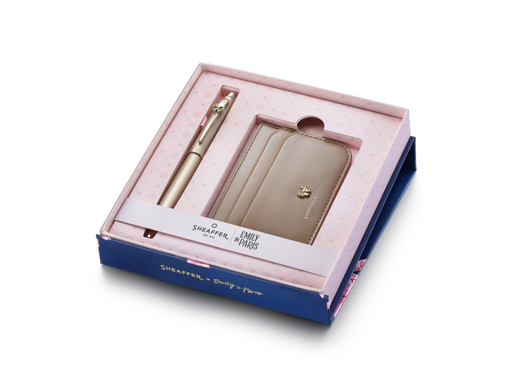 Sheaffer, dárková sada Emily in Paris, kuličkové pero SH100 chamagne gold + kožené pouzdro na kreditní karty béžové G2937751-2 EIP