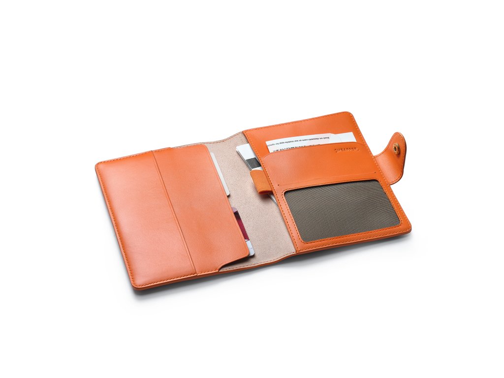 Pouzdro je navrženo tak, aby pojmul až dva pasy, ID kartu, palubní vstupenku a štíhlé pero, a přitom zůstalo kompaktní. Uvnitř najdete chytře rozložené přihrádky na karty a dokumenty, včetně prostoru na drobné mince či lístky. Zapínání na druk (snap-button) udrží vše bezpečně pohromadě během cest letadlem, vlakem i autem.