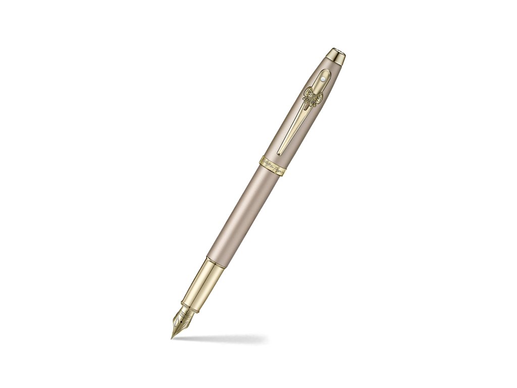 Plnicí pero Sheaffer 100 Emily in Paris Champagne Gold je ideální volbou pro všechny, kdo chtějí spojit krásné psaní s elegantním designem. Tělo pera zdobí zářivý lak v odstínu champagne gold, doplněný lesklými doplňky v odpovídajícím champagne tónu, díky nimž pero působí sofistikovaně, ale neokázale.