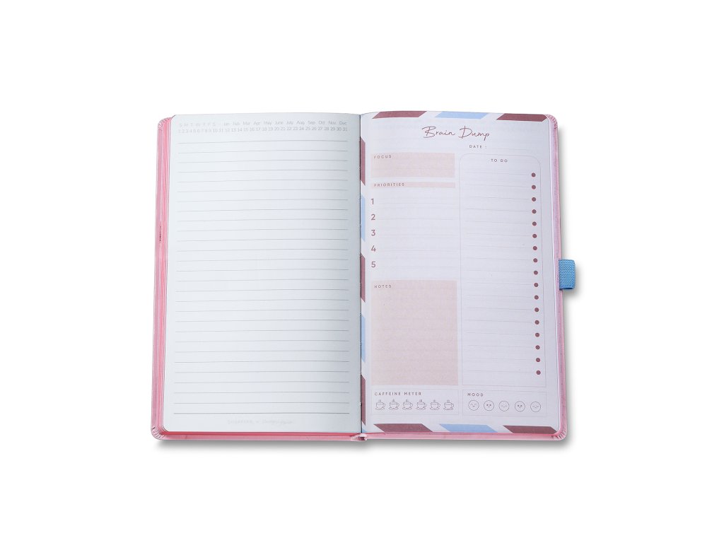 - Samolepkový arch v balení – můžete si tak stránky personalizovat, zvýraznit důležité poznámky a dodat diáři vlastní styl